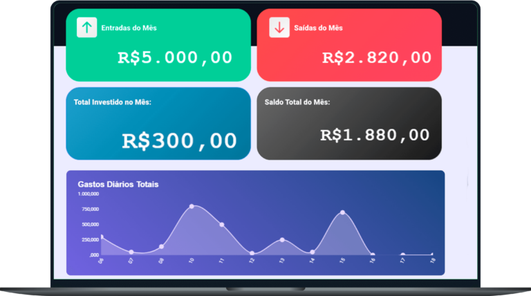Tenha clareza real sobre o seu dinheiro. Veja o que entra, o que sai e onde está indo cada centavo. Chega de viver no escuro agora você tem controle total do seu caixa, direto na palma da mão.